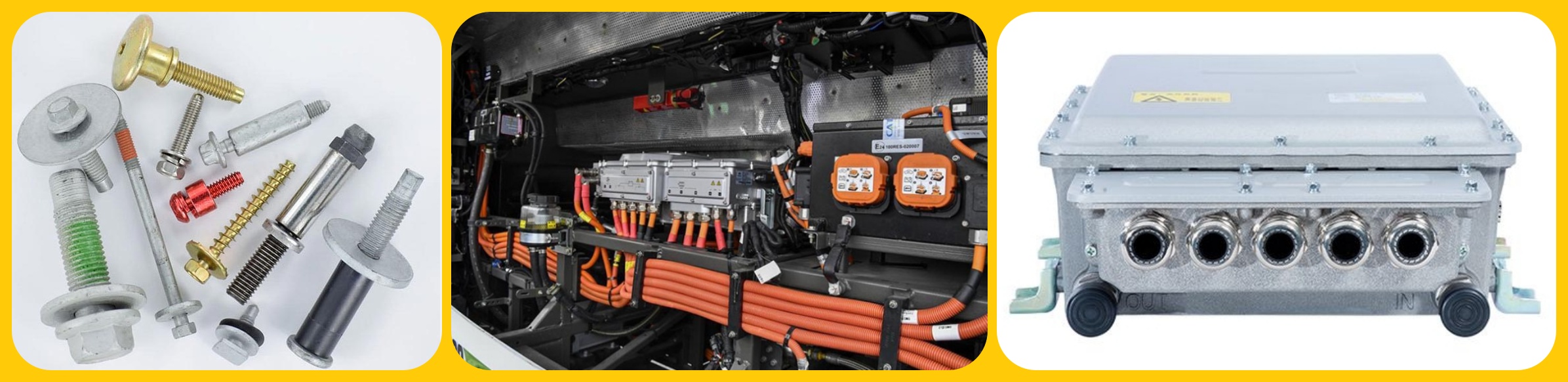 Fixatiebevestigingsmiddelen voor batterijpakketten: als de kernergiecomponent van een EV, moet de batterij veilig en betrouwbaar worden bevestigd om trillingen, effecten en potentiële botsingen tijdens het werk van de voertuig te weerstaan. Bevestigingen moeten een extreem hoge sterkte, uitstekende vermoeidheidsweerstand en superieure corrosiebescherming bezitten om de veiligheid van de batterij onder alle bedrijfsomstandigheden te waarborgen.