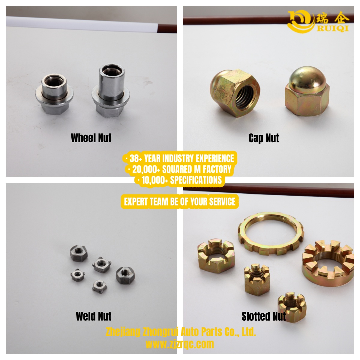 Bevestig uw verbindingen met onze precisiemoeren: wielmoeren, dopmoeren, lasmoeren en sleufmoeren | Zhejiang Zhongrui Auto -onderdelen | Ontworpen voor betrouwbaarheid en prestaties