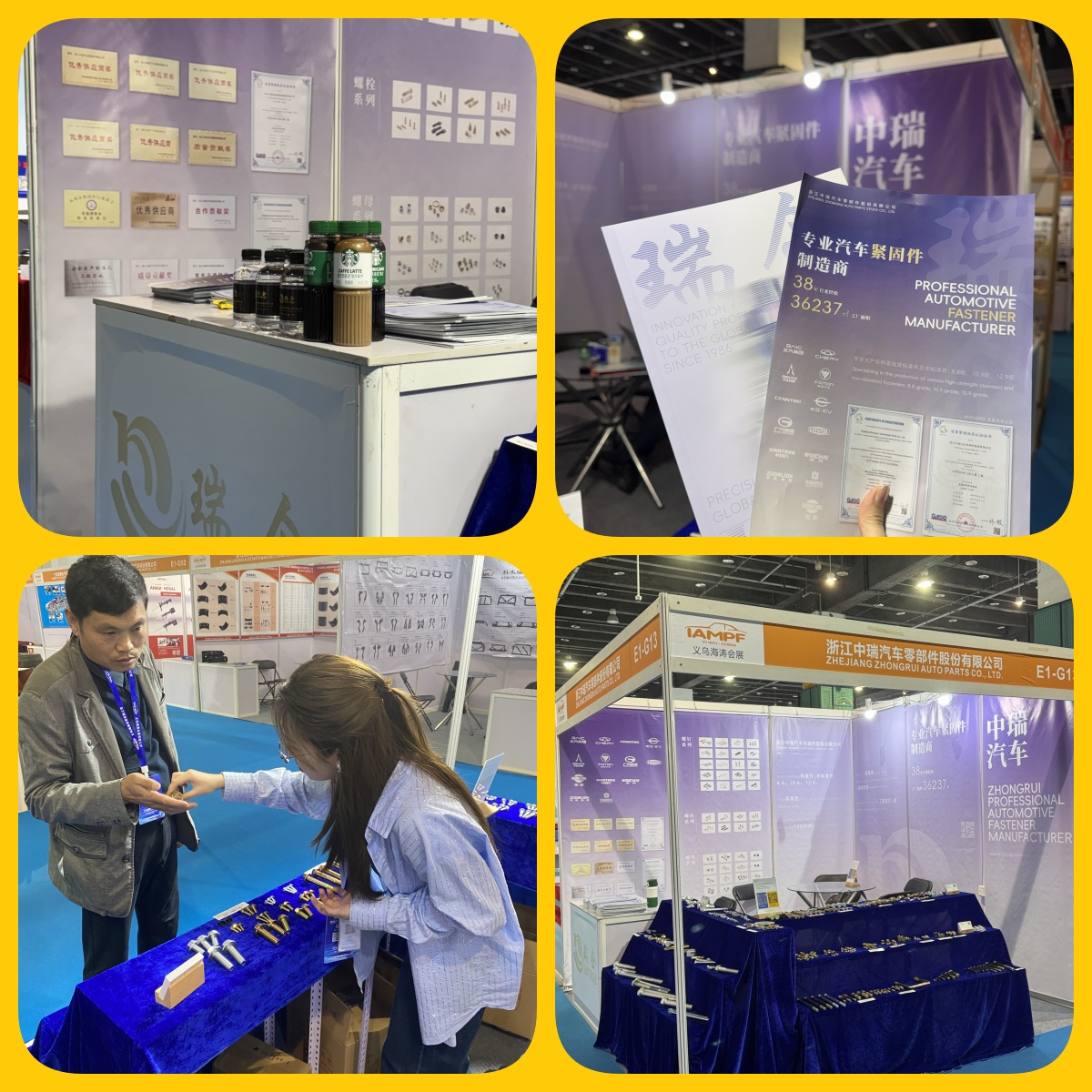 Bekijk enkele hoogtepunten van onze stand! We hebben onze expertise gepresenteerd in OEM- en aftermarket-onderdelen, aangepaste bevestigingsmiddelen, waaronder bouten, beugels, pennen en veren.